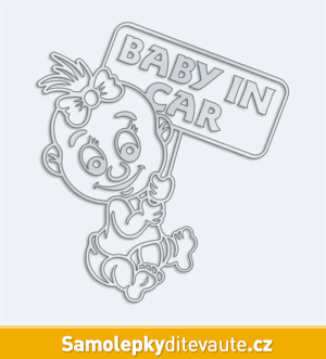Nálepku na auto Děvče s nápisem nabízíme ve 24 barvách a doplníte ji jménem dítěte nebo textem o délce až 30 znaků. Minimální rozměr samolepky je 9×10 cm, katalogové číslo 22596. Samolepka děvče s nápisem Baby In Car upozorní ostatní řidiče na přepravované dítě v autě.