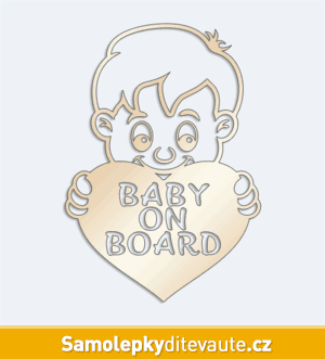 Nálepku na auto Kluk se srdíčkem nabízíme ve 24 barvách a doplníte ji jménem dítěte nebo textem o délce až 30 znaků. Minimální rozměr samolepky je 7×10 cm, katalogové číslo 22316. Samolepka na auto baby on board - Kluk se srdíčkem upozorní ostatní řidiče na přepravované dítě v autě.